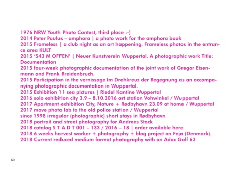 2015 Participation in the vernissage Im Drehkreuz der Begegnung as an accompa- 2022 several photographic short stays in Rødbyhavn