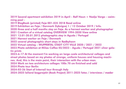 2018 Current reduced medium format photography with an Adox Golf 63 2024-2025 lolland bogprojekt (Book Project) 2011-2025 fotos / interviews / møder