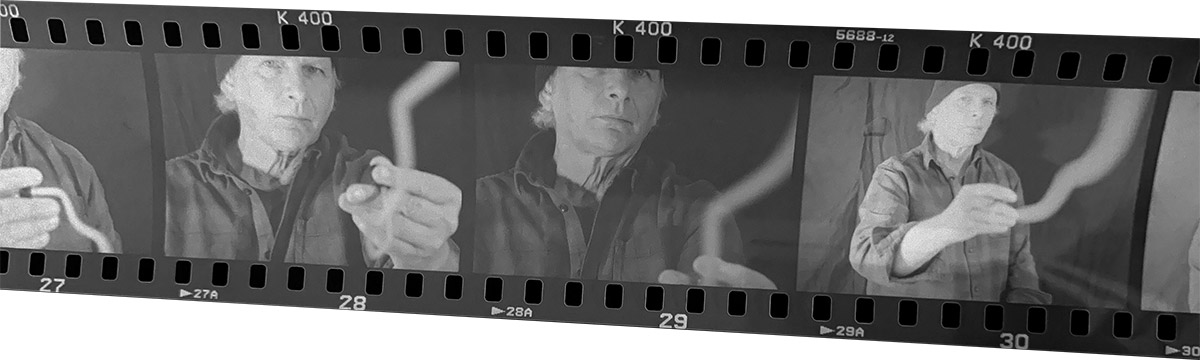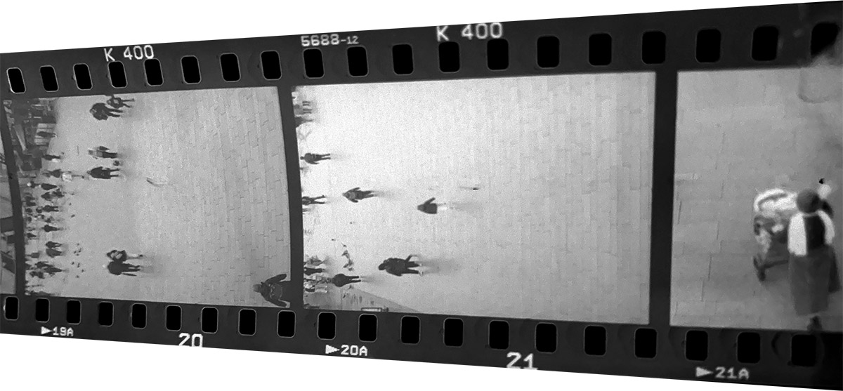 Von den gerade entwickelten Negativen abfotografiert
