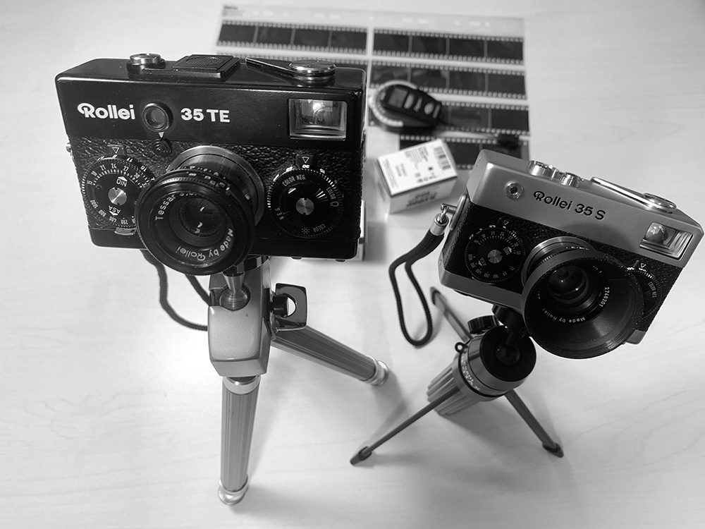 Ein paar Wochen habe ich mit verschiedenen Nikon und Nikkormat Spiegelreflex Kameras ‚rumexperimentiert. Sie haben alle gute, scharfzeichnende Optiken und ausgezeichnete Belichtungsautomatiken. Aber so richtig glücklich werde ich damit nicht. Zu schwer und zu klobig. Ich bevorzuge leichte Sucherkameras. Für meinen Aufenthalt auf der seltsamen dänischen Insel Fejø und meiner anschließenden Interrailtour durch Italien und eventuell Frankreich habe ich zwei Rollei 35 (S und TE) Kameras ausgewählt. Sie sind leicht und fallen nicht so auf. Und super scharfe Fotos sind mir nicht immer wichtig. Obwohl die Kameras hervorragende Optiken besitzen. Der Moment ist wichtig. Ich meine aber nicht das Einfrieren des Istzustandes. Das ist so eine Floskel. Ich liebe die schnelle dokumentarische Reportagefotografie. Schwarzweiß, körnig und scheinbar nebenbei fotografiert.