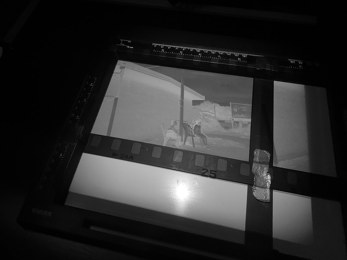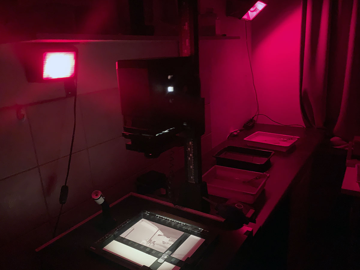 I am enlarging photographs of Rødbyhavn and Lolland in the photo lab for an exhibition. After a year’s break, I lack the practice to judge the negatives correctly. Eventually, it will get easier. It’s not quite right here yet. One second less should do the trick.