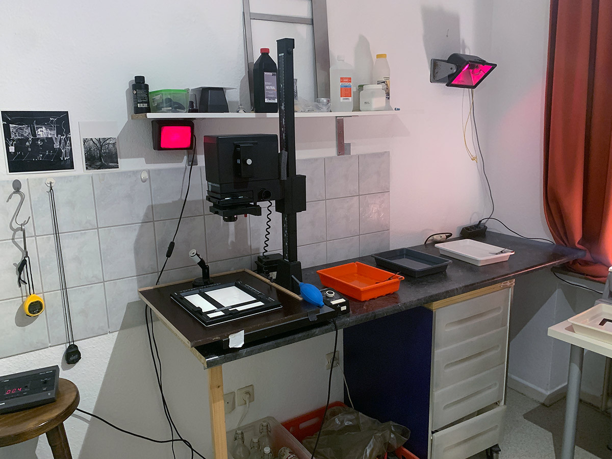 Für eine Ausstellung vergrößere ich Rødbyhavn- und Lolland Fotografien im Fotolabor. Nach einem Jahr Pause fehlt mir die Übung, die Negative richtig zu beurteilen. Irgendwann geht es dann besser von der Hand. Hier ist es auch noch nicht ganz richtig. Mit einer Sekunde weniger sollte es dann passen.